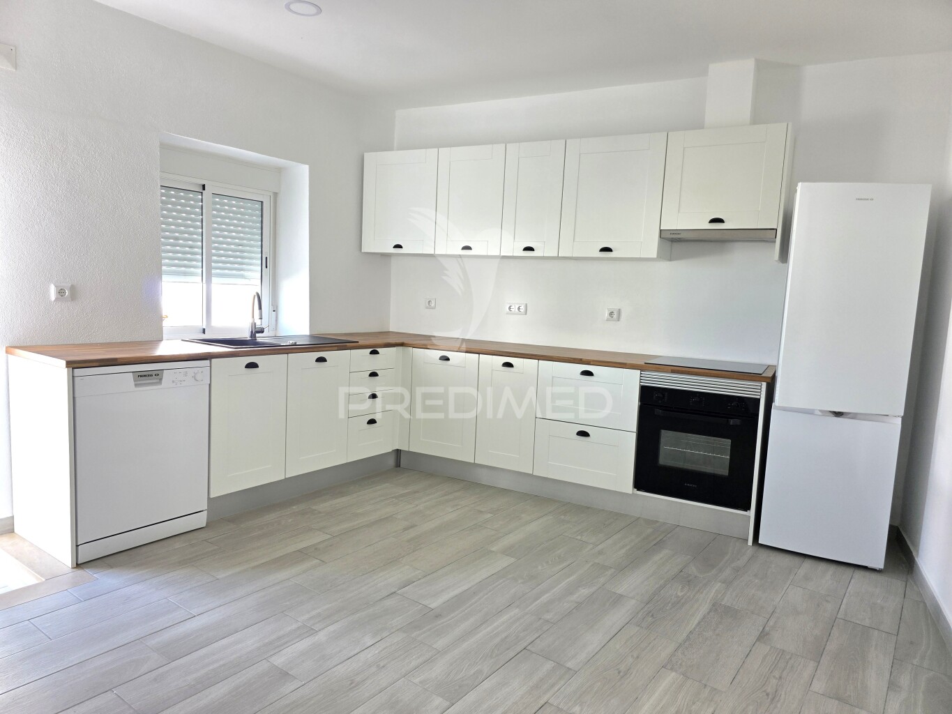 Cozinha (equipada) e sala em openspace