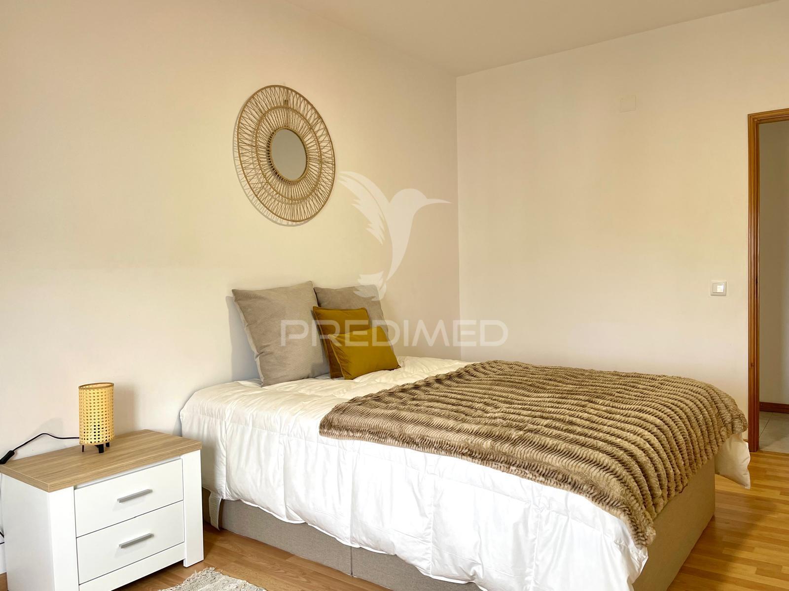 Dispõe de 3 quartos com roupeiros e devidamente mobilados.