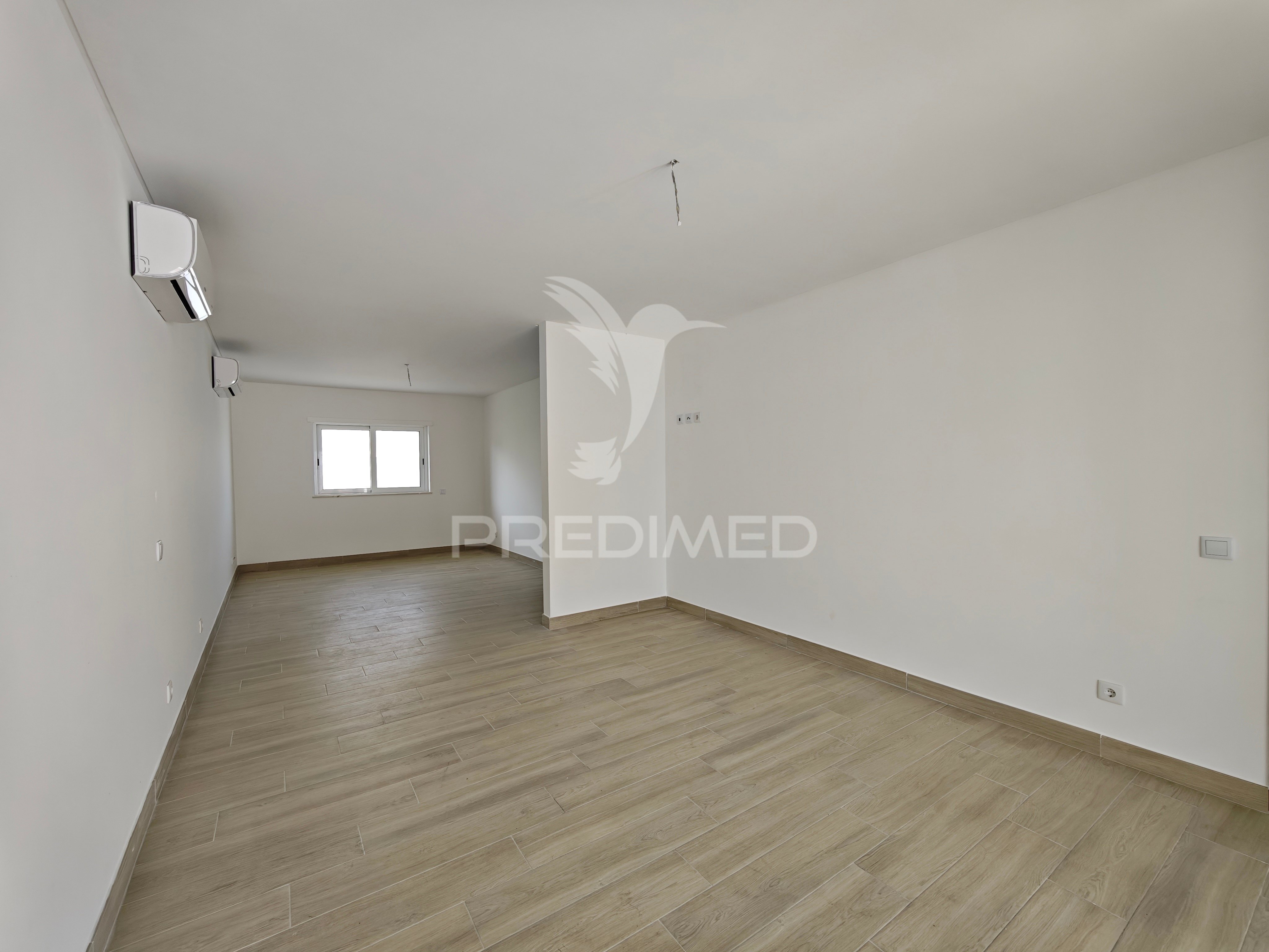 Sala ampla e luminosa com ligação ao espaço exterior.