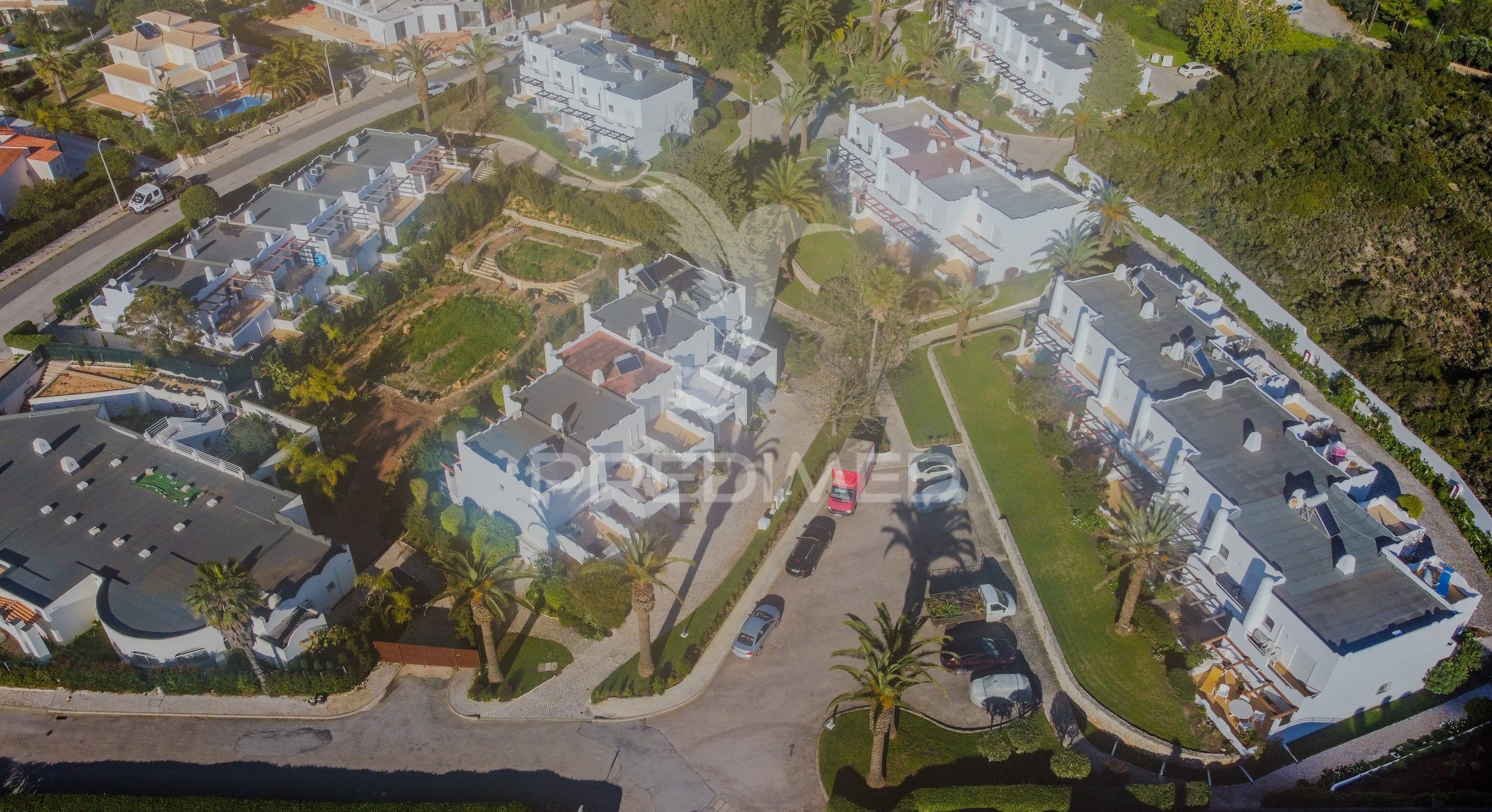 Disponível para arrendamento anual, esta moradia T2 em condomínio fechado situa-se numa das localizações mais procuradas, a apenas 500 metros do mar, onde a vista se abre sobre jardins cuidados e o azul do oceano — uma combinação rara e cada vez mais valorizada.