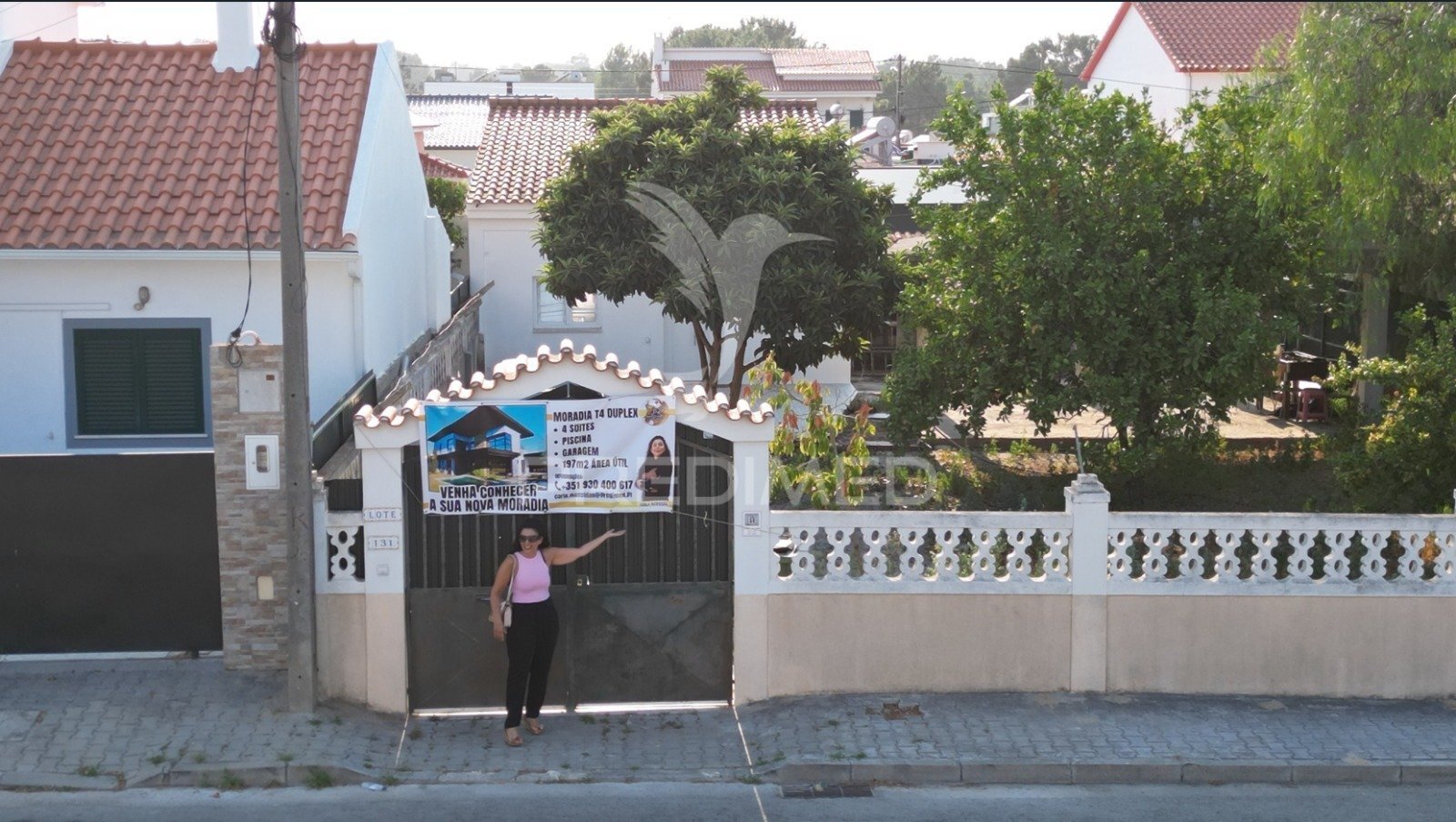 A parede perimetral define com clareza os limites da propriedade e oferece um cenário de partida simplificado para qualquer intervenção. A dimensão do lote permite diversas possibilidades de implantação, desde uma moradia unifamiliar ampla até um projeto com zonas exteriores distintas.
