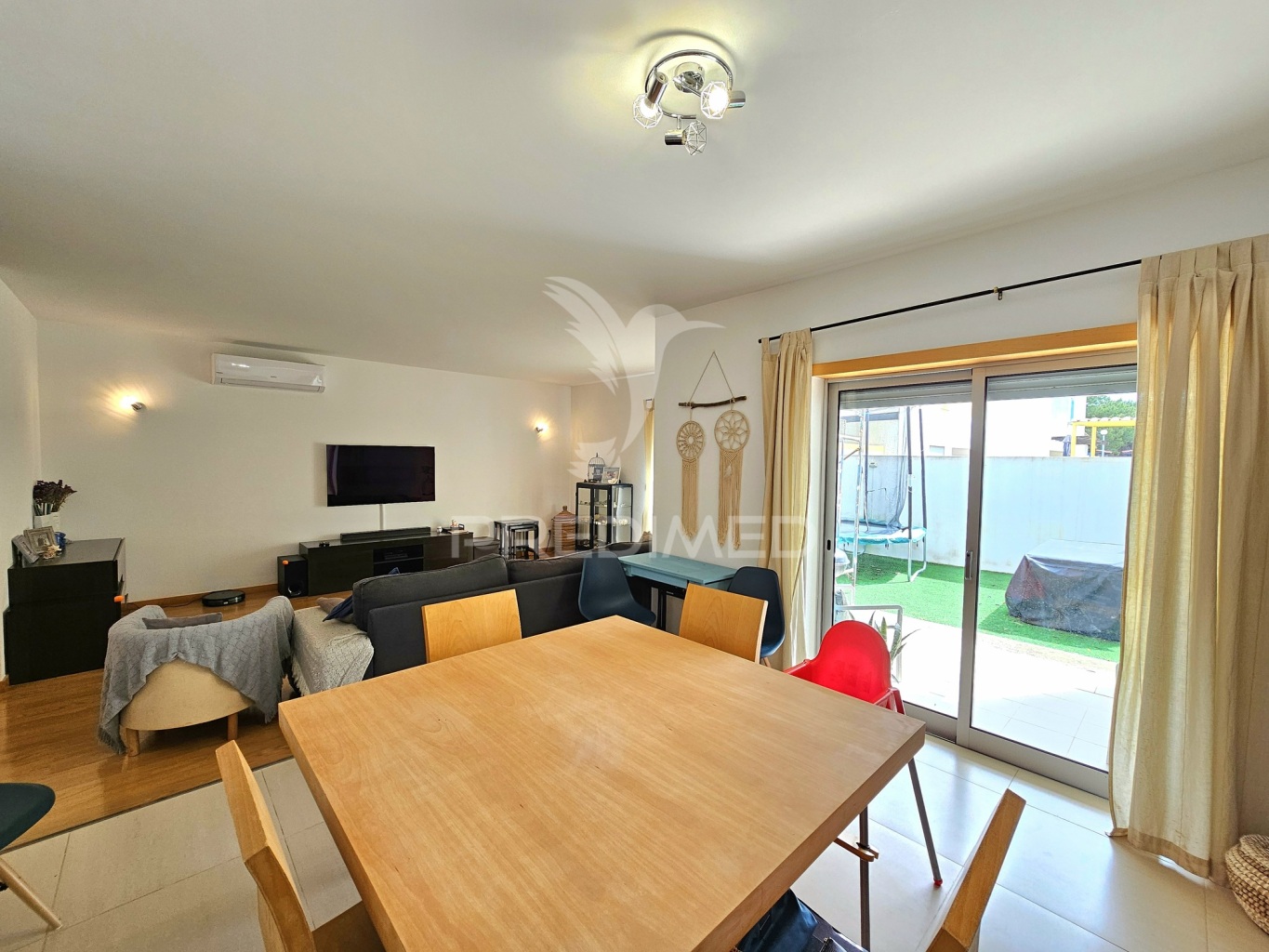 In addition to the living room, the house has air conditioning in 3 bedrooms, floating floors and a water heater.