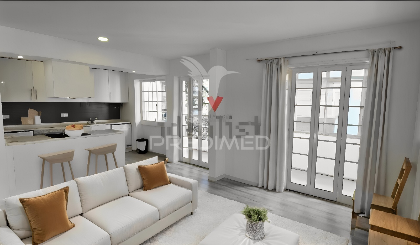 As primeiras imagens são algumas fotos de virtual staging para dar ideias de decoração do imovel (apenas sao imagens exemplo, o imóvel é vendido sem mobilia), depois as restantes sem mobilia já são as imagens reais do apartamento.