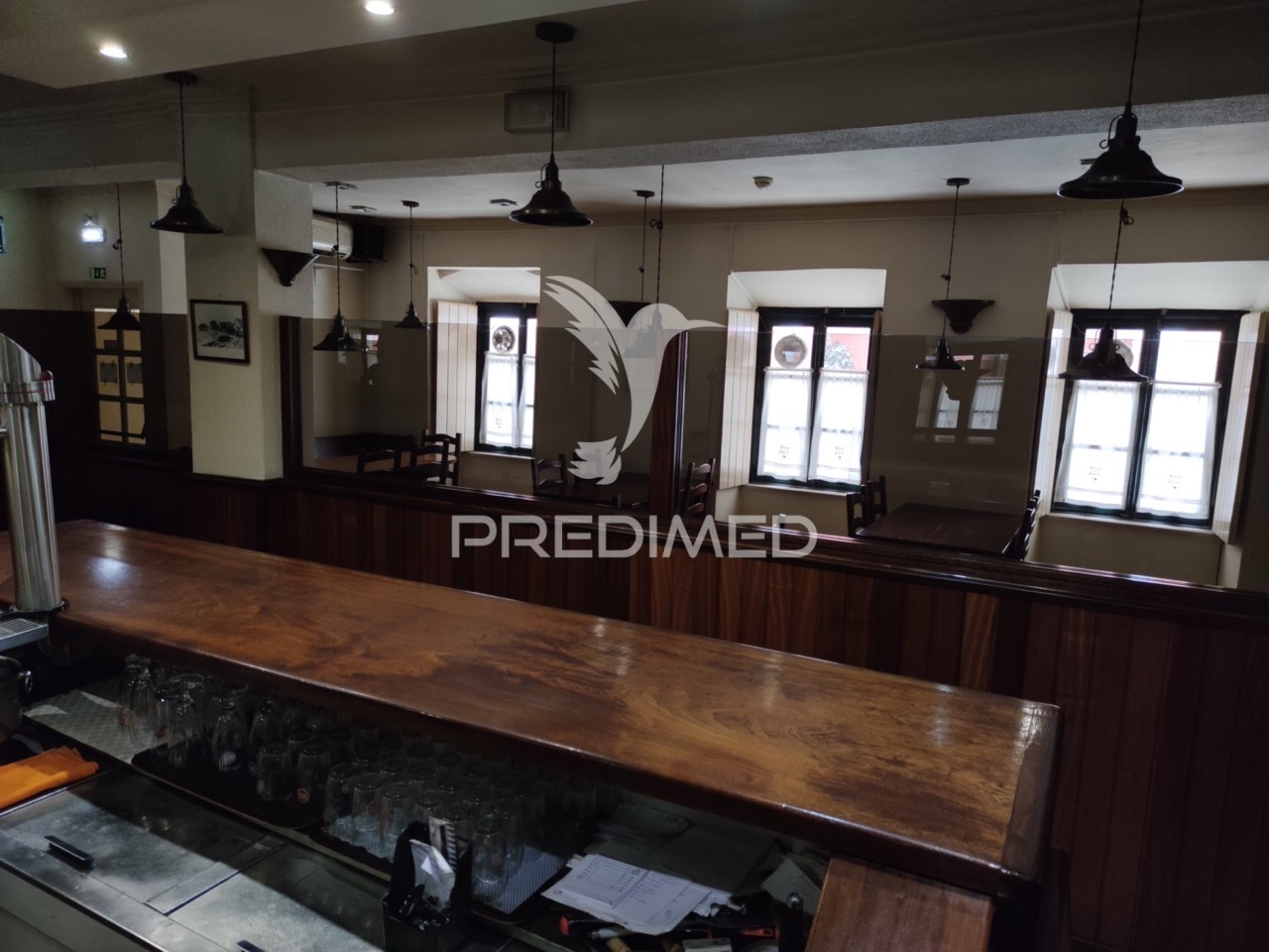 O destaque deste restaurante é o balcão em madeira maciça, que se estende ao longo do espaço, proporcionando uma atmosfera acolhedora para os seus clientes.