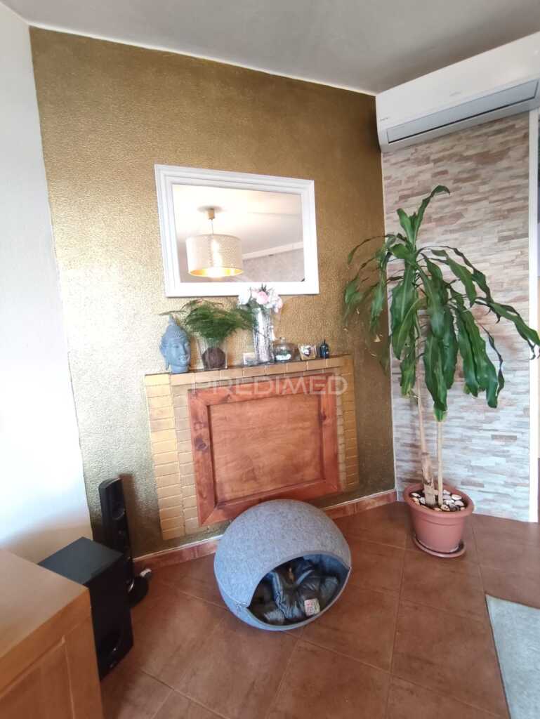 Amplio salón con chimenea y aire acondicionado,