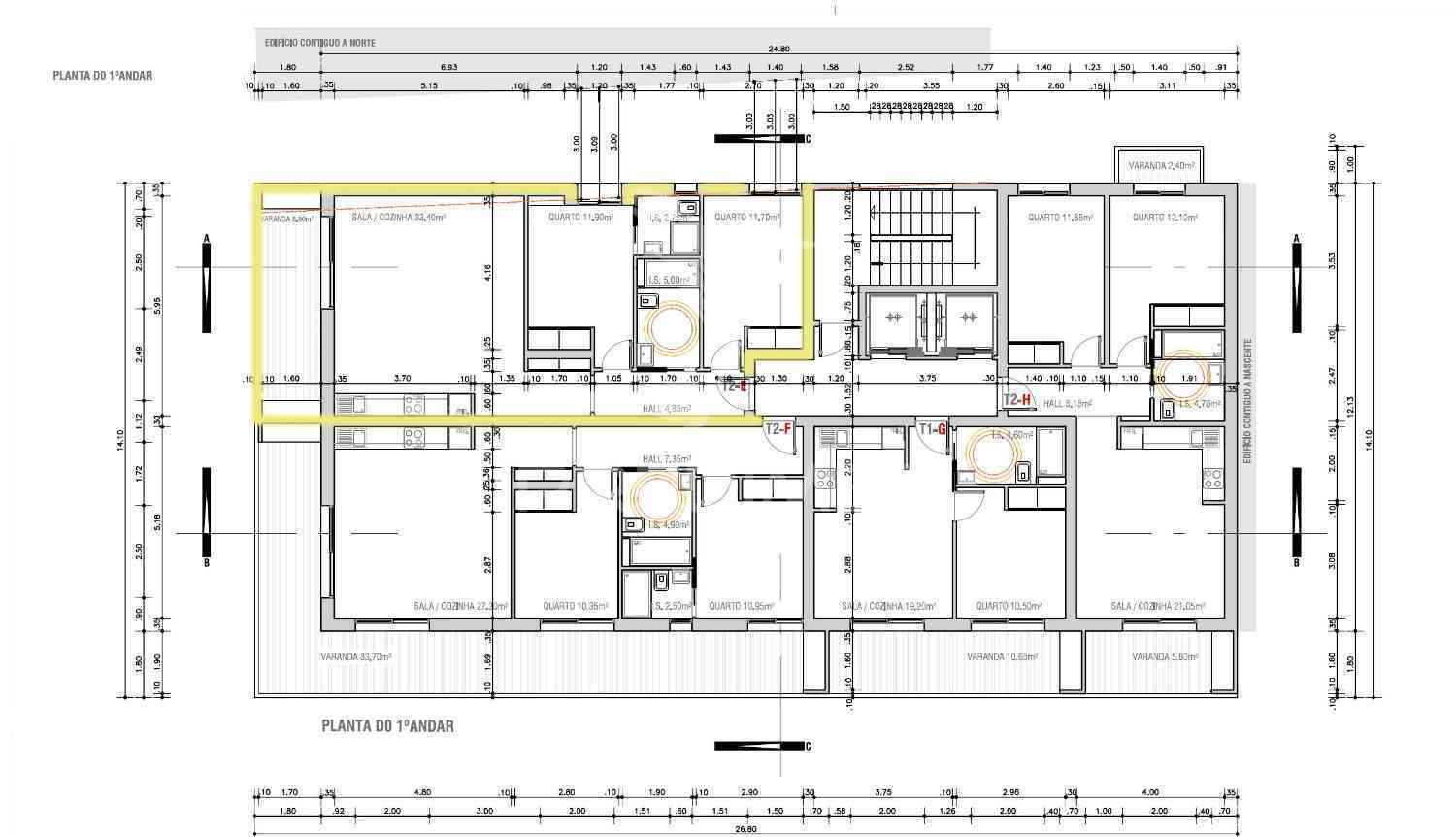 Magnifique appartement T2 (2 chambres) à Monte Gordo, dans un immeuble en construction situé en deuxième ligne de plage. L'immeuble dispose d'un ascenseur et d'une piscine sur le toit. La plage est à seulement 100 mètres.