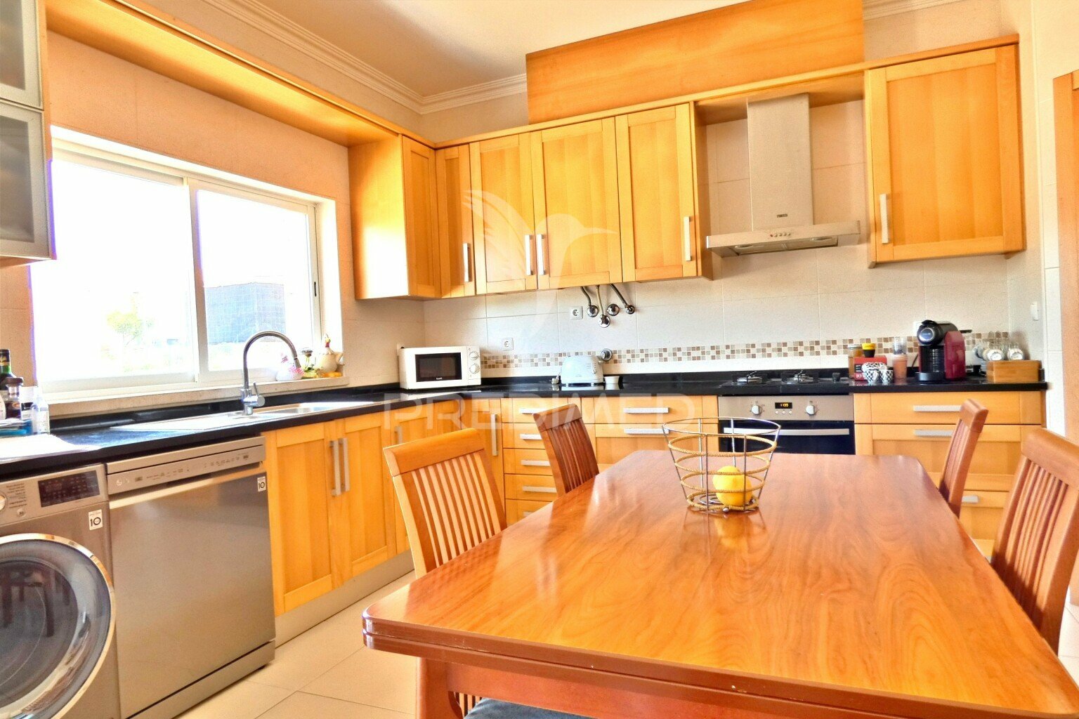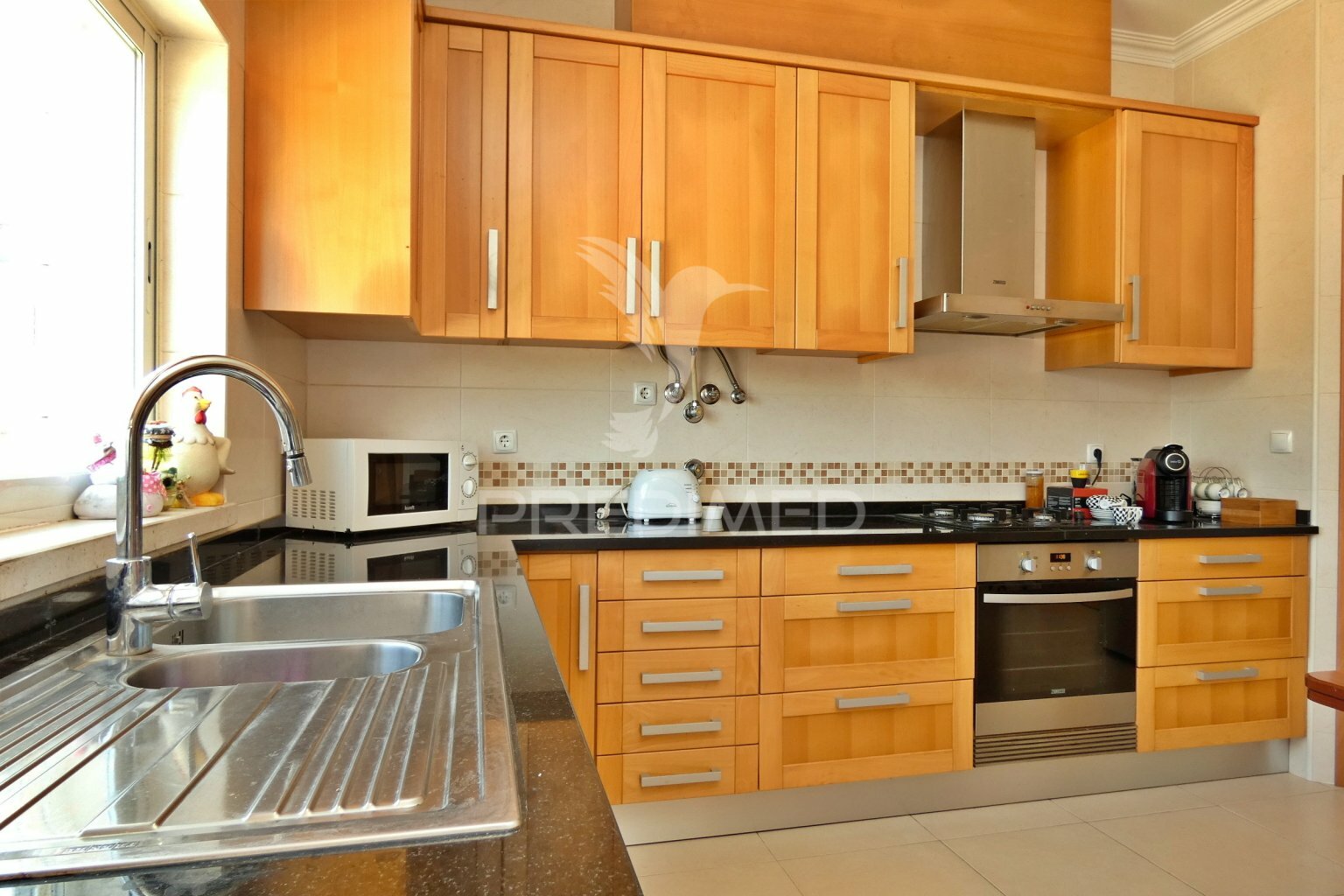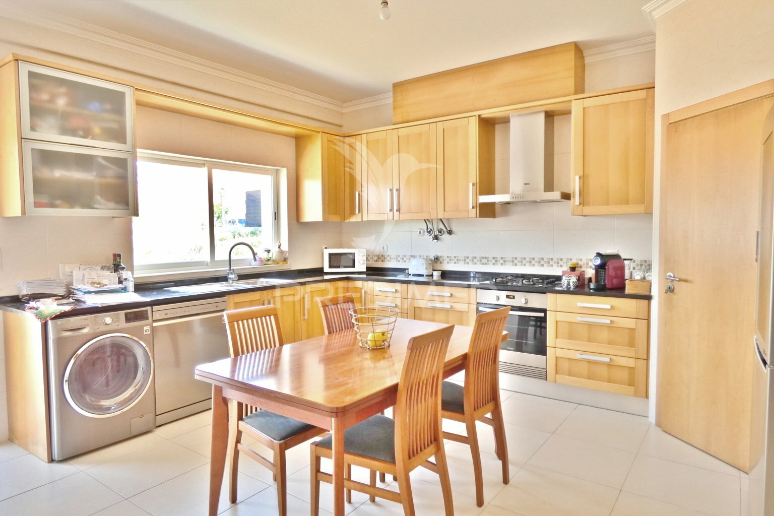 - Kitchen, equipped (oven, gas hob, extractor hood), has a direct access door to the property's private area and access door to the dining area and living room.