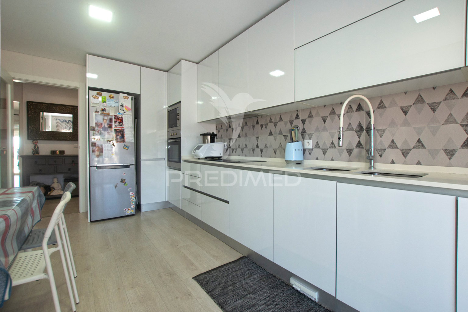 - Küche ausgestattet mit Cerankochfeld, Backofen, Dunstabzugshaube, Wasserkocher, Wasserkocher, Geschirrspüler, Waschmaschine, mit direktem Zugang zu einem geräumigen Balkon