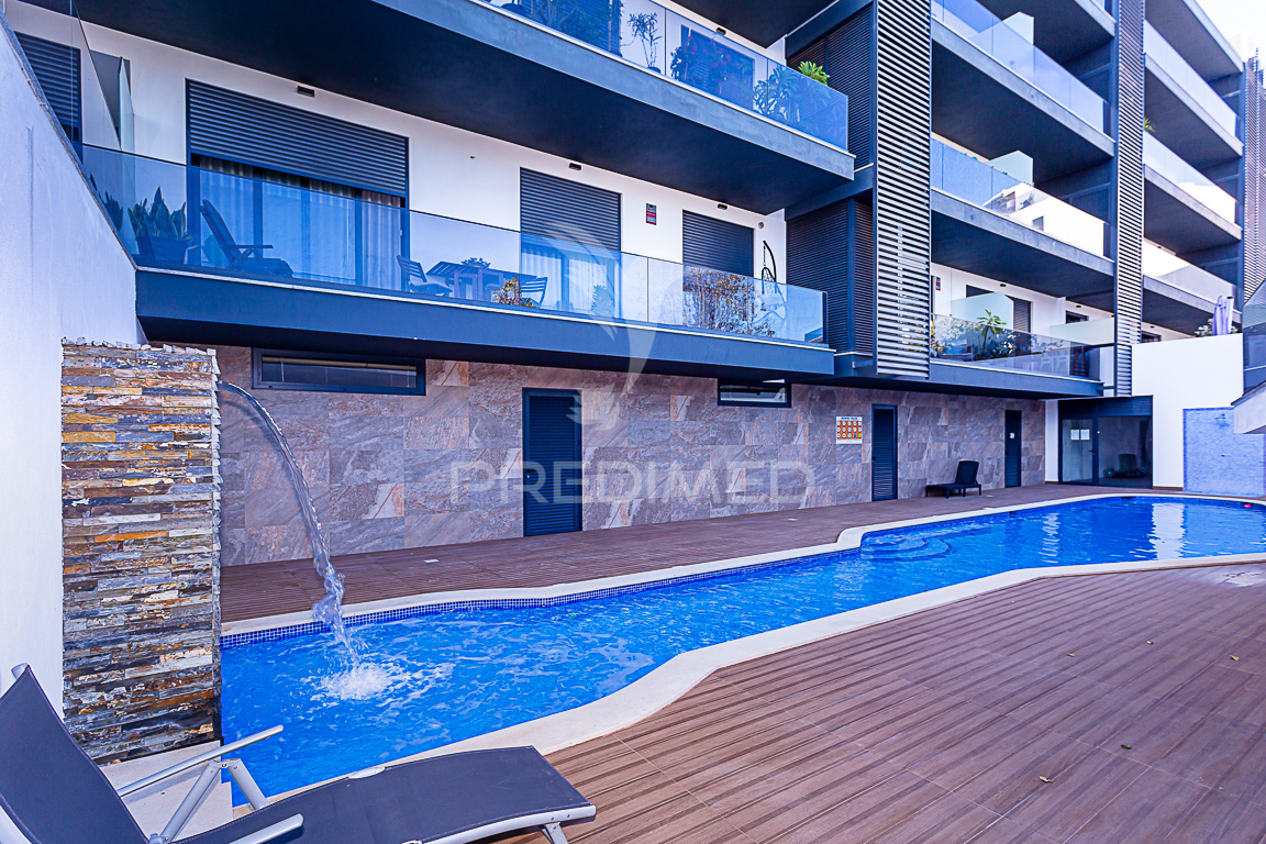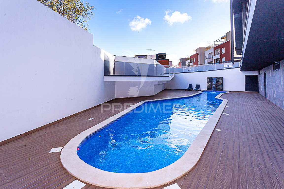 Apartamento composto por sala e cozinha em open space, 2 quartos ( um deles em suite ), 1 casa de banho e um magnifico quintal com 40m2 onde poderá desfrutar de ótimos momentos de lazer com a família e amigos. Todas as divisões do apartamento têm acesso para a varanda que tem vista para a piscina do condomínio.