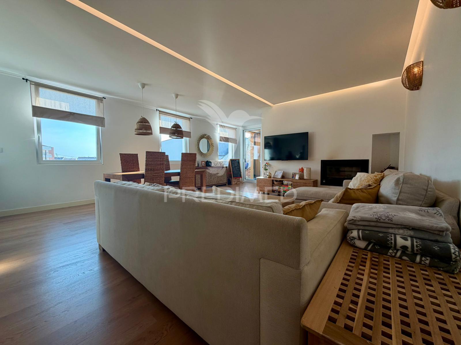 L'unité principale est un appartement de 4 chambres (T4) de 173 m², entièrement rénové il y a deux ans. Il offre un cadre de vie moderne et confortable avec de beaux espaces de vie. À l'étage, un vaste séjour/cuisine ouverte, lumineux et accueillant, est agrémenté d'une cheminée avec système de récupération de chaleur. La cuisine est entièrement équipée et des toilettes invités complètent cet étage. On y trouve également trois chambres spacieuses et une salle de bain avec douche et espace buanderie.