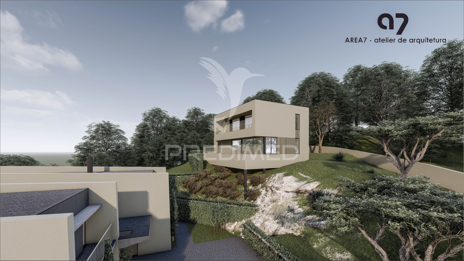 Moradia independente em início de construção, com excelente exposição solar, com vistas deslumbrantes sobre o vale da cidade de Santo Tirso, jardim e piscina.