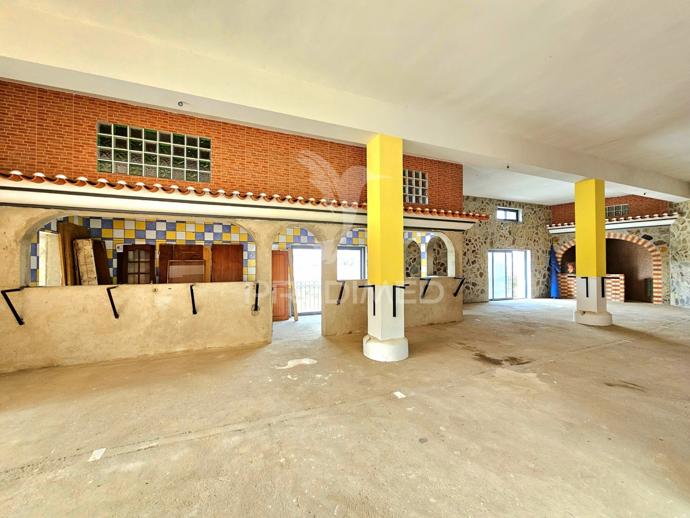 Existe um projeto para a construção de um espaço comercial destinado à restauração, com zona de cozinha, zona de refeições, zona de bar, dois salões, duas casas de banho, casa de arrumos e espaço para churrascaria.