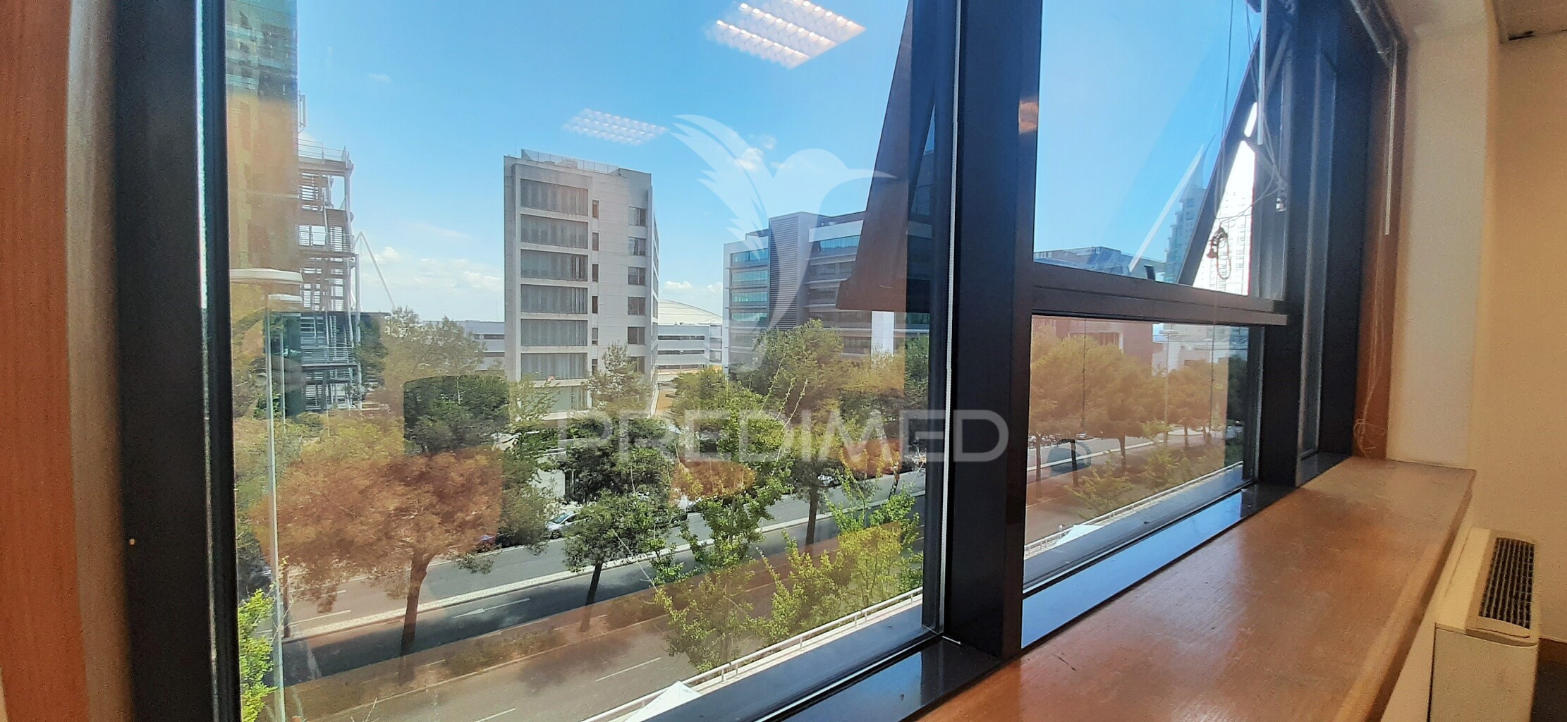 O escritório possui uma excelente exposição solar, tendo uma vista muito desafogada para a Av. Dom João II.