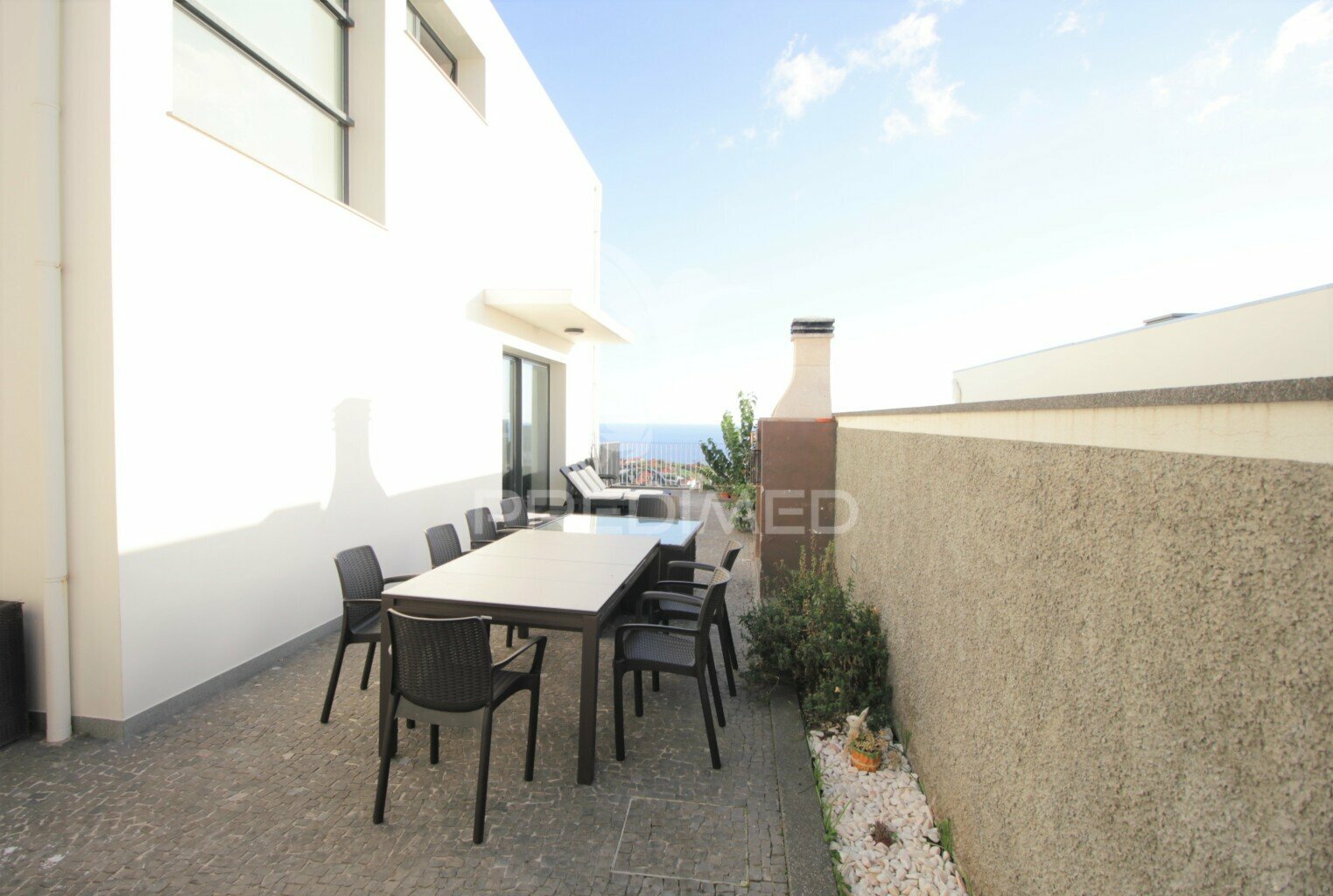 Garagem com capacidade para 2 viaturas, 3 quartos de dormir (um deles suite) todos com acesso a varanda virada a sul com vista mar,