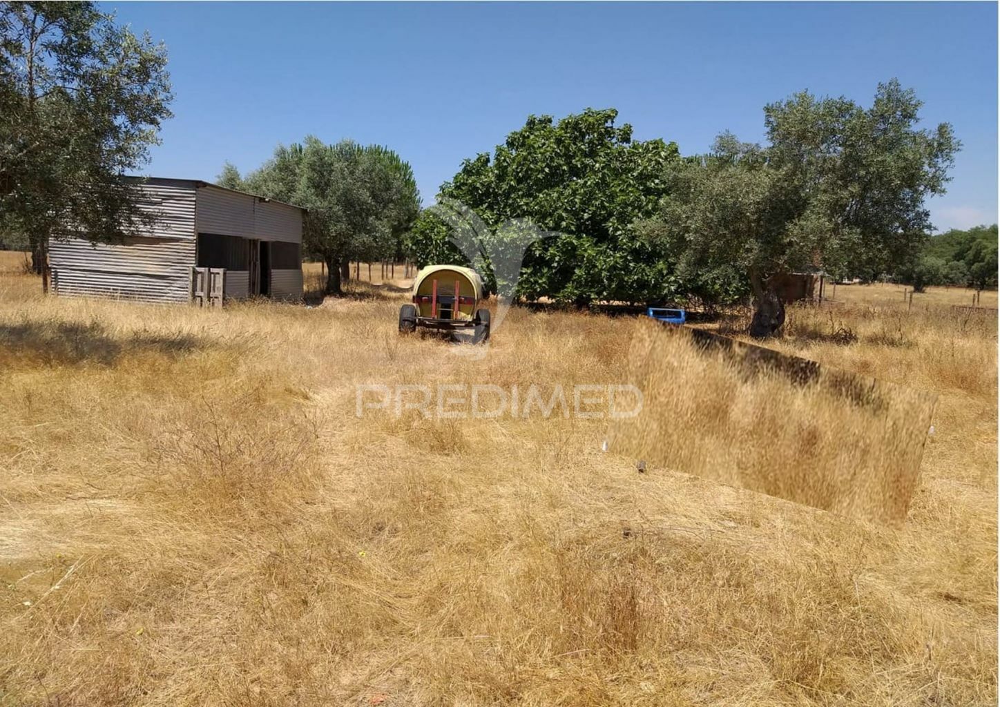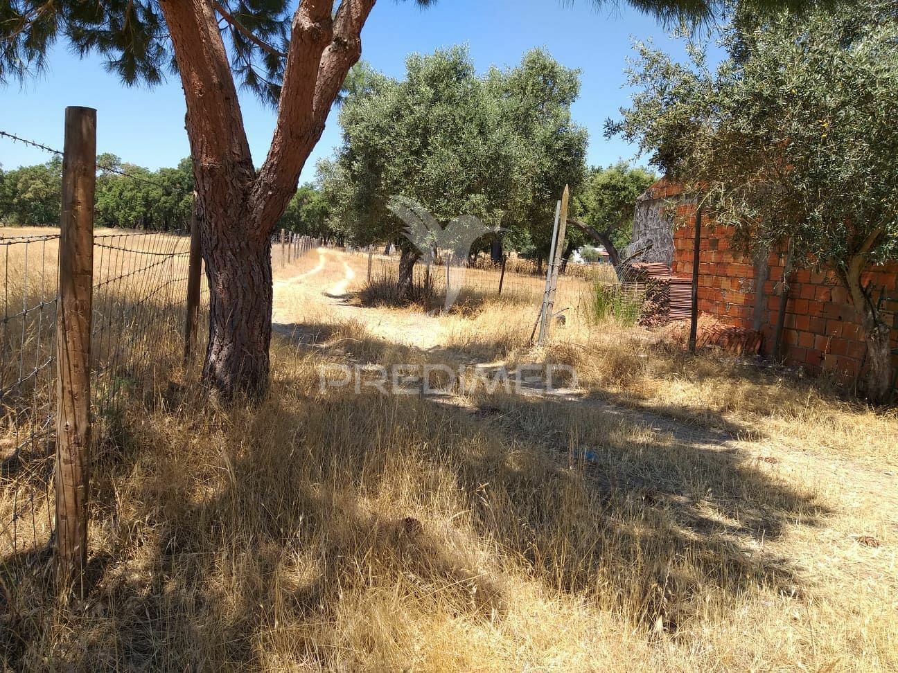 Pequena grande propriedade, muito bem localizada e muito abonada, esta propriedade tem 3 poços de água, pinheiros mansos, sobreiros, oliveiras e algumas arvores de fruto, tem ainda um arrumo para animais em latão zincado e outro grande armazém feito em tijolo e cimento com telhado e portão.