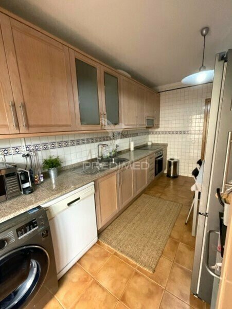 Com hall de entrada e um corredor que separa as áreas comuns das zonas de descanso, o apartamento tem uma cozinha ampla com bastante arrumação e espaço para uma mesa de refeições. A sala espaçosa permite criar várias áreas de lazer e ambientes, com zona de estar e de jantar.