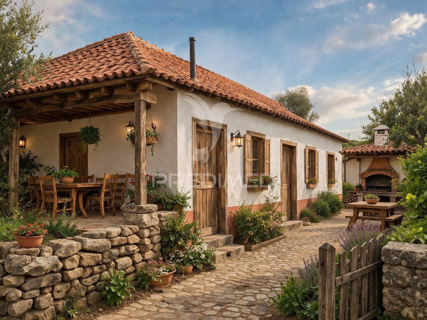 O imóvel dispõe de um terreno totalmente delimitado, com ótima exposição solar, ideal para criar um espaço de lazer, jardim ou horta. Desfrute ainda de vistas desafogadas e de um ambiente calmo e natural.