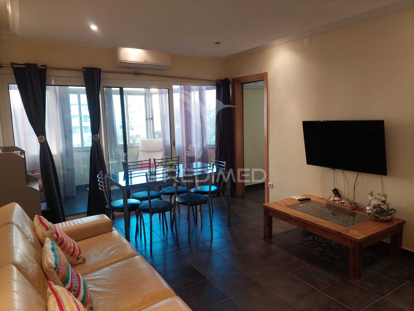 Apartamento amueblado, con 1 dormitorio con cama de matrimonio y 1 dormitorio con cama infantil. El salón está amueblado, con salida a balcón cerrado y la cocina está equipada (no dispone de lavavajillas), dispone de baño con ducha. Se encuentra en el centro de Quarteira, con fácil acceso a las zonas comerciales y a la playa.