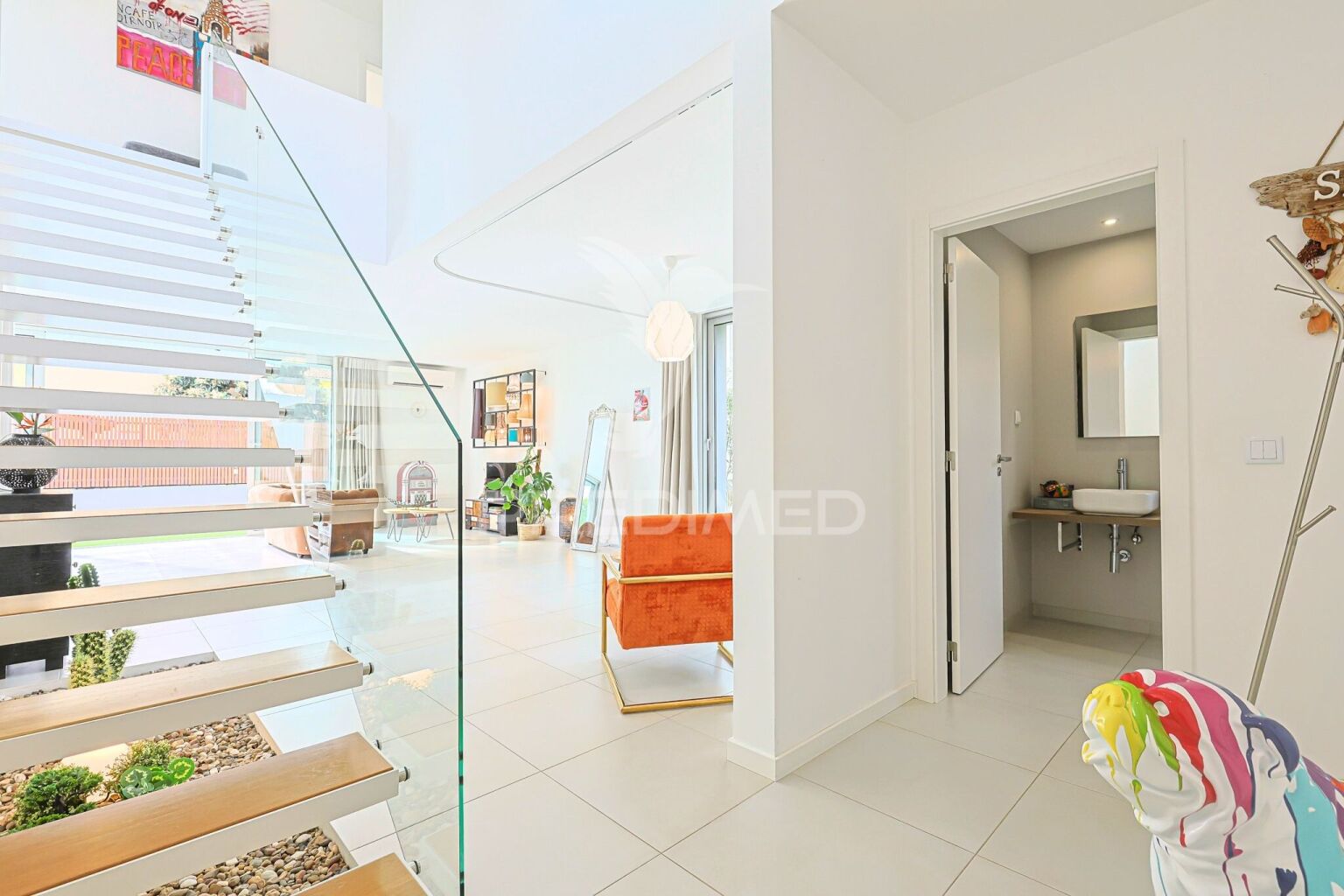 En la encantadora Aroeira, tan cerca de las playas, tenemos para ti esta villa de arquitectura contemporánea en una parcela de 322m2.