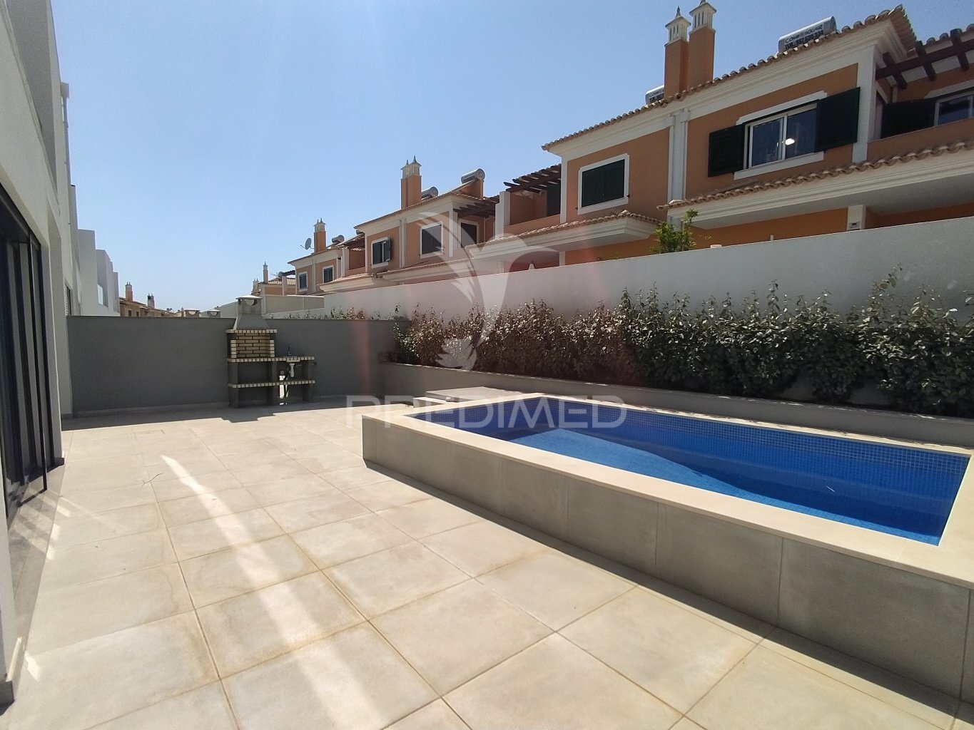 Adosado con espacio exterior y piscina.